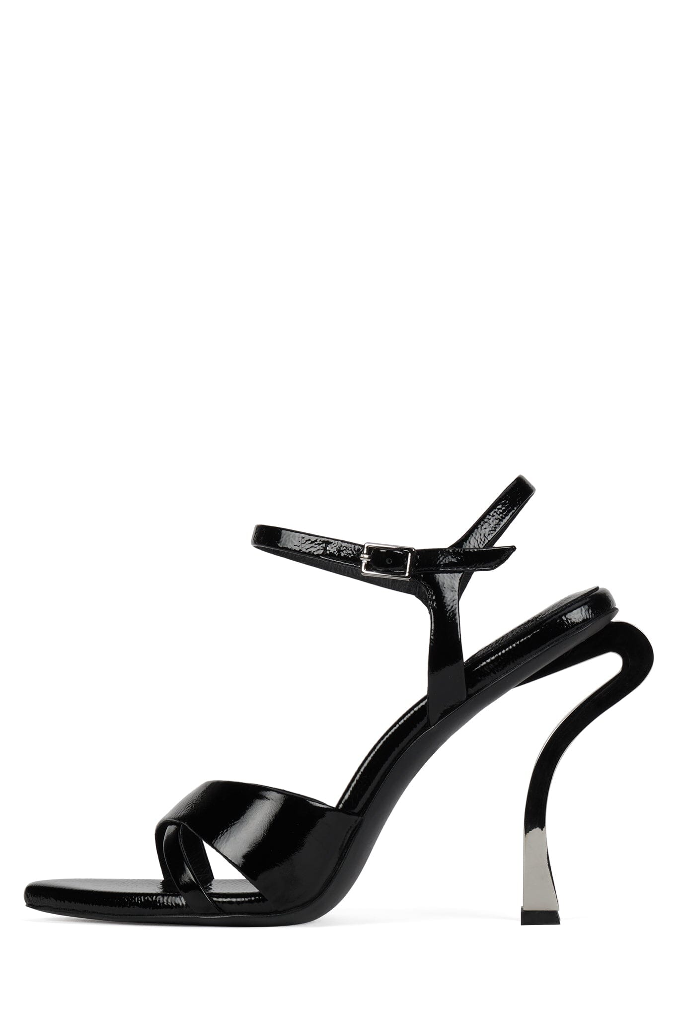 Cross-band sandal with sculpted metal heel