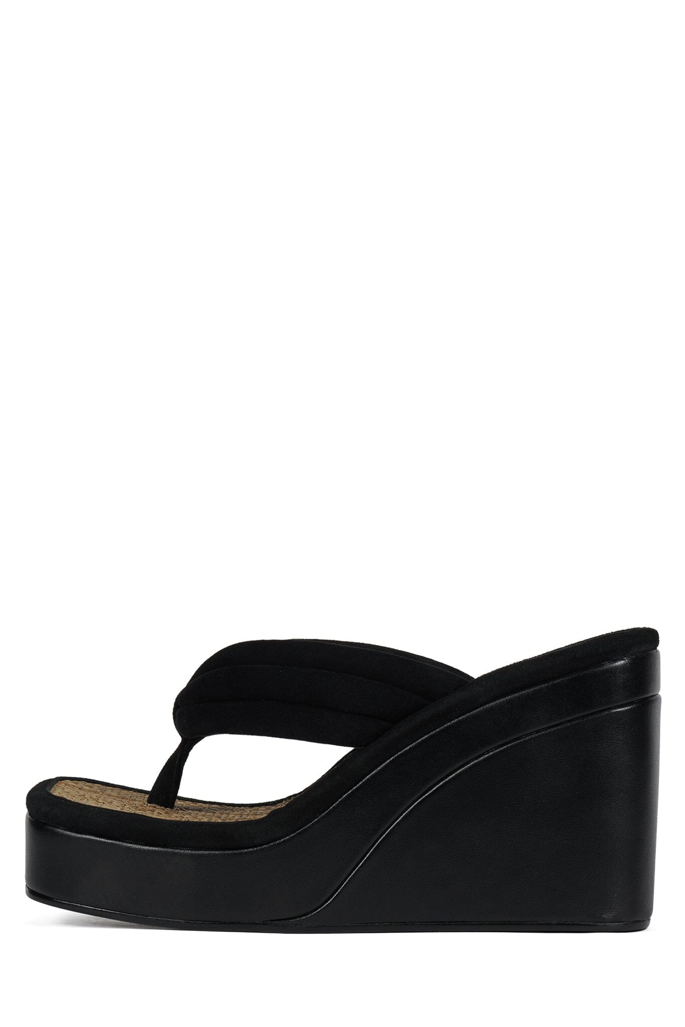 Square-toe platform wedge sandal with raffia insole